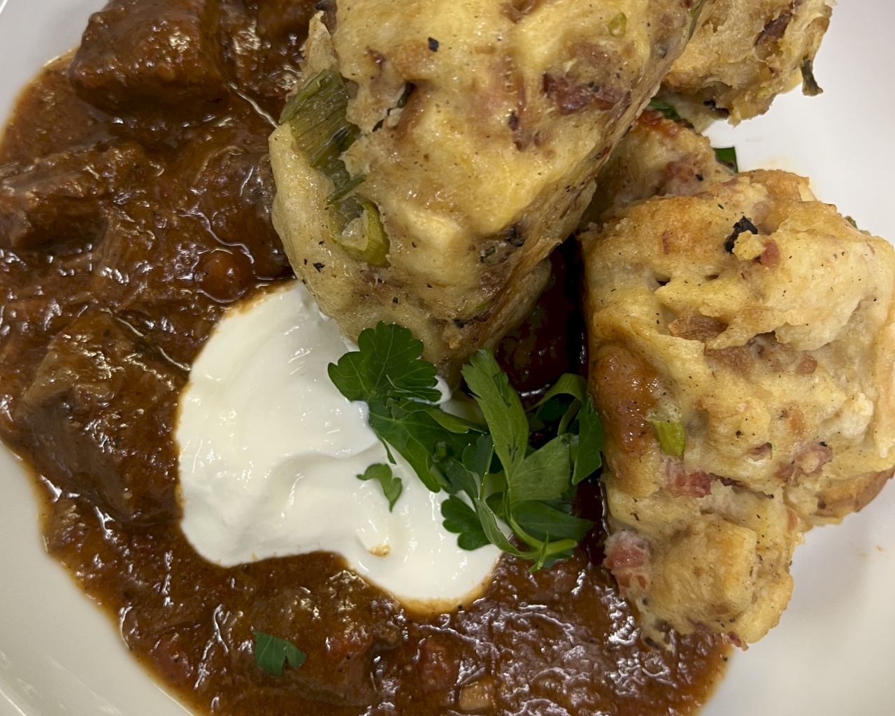 Zajímavostí je, že i špekové knedlíky lze odlehčit. Místo špeku nebo slaniny totiž používáme uzenou krkovici.