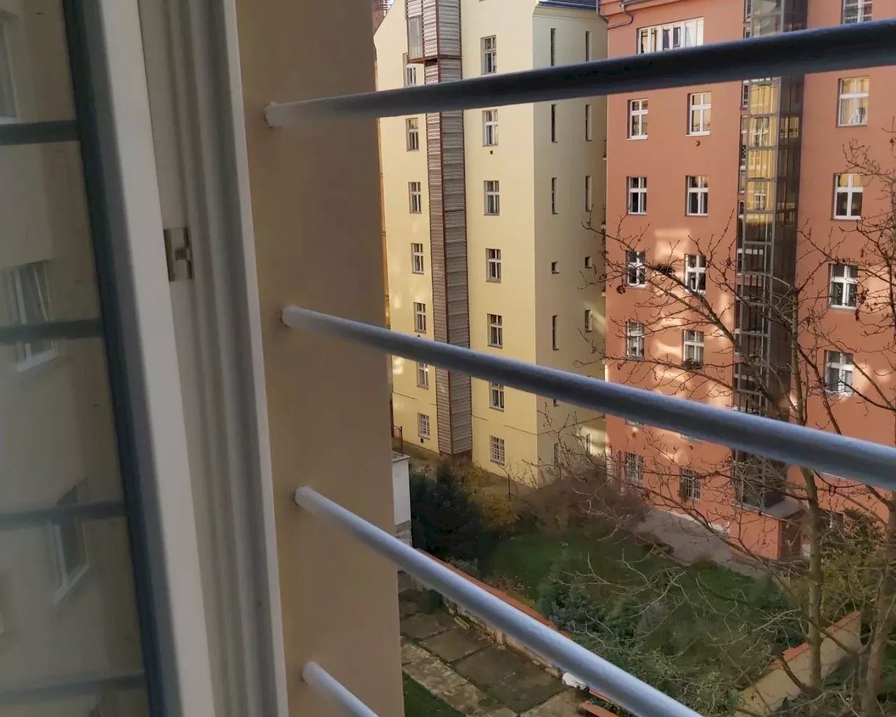 Kompletně nová fasáda do vnitrobloku žižkovského dvorku. Nová omítka, okna, parapety, okapy...