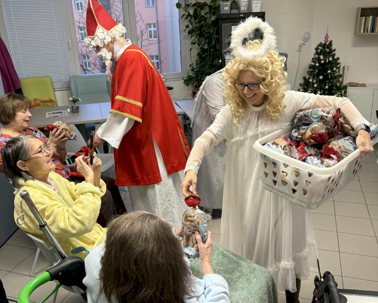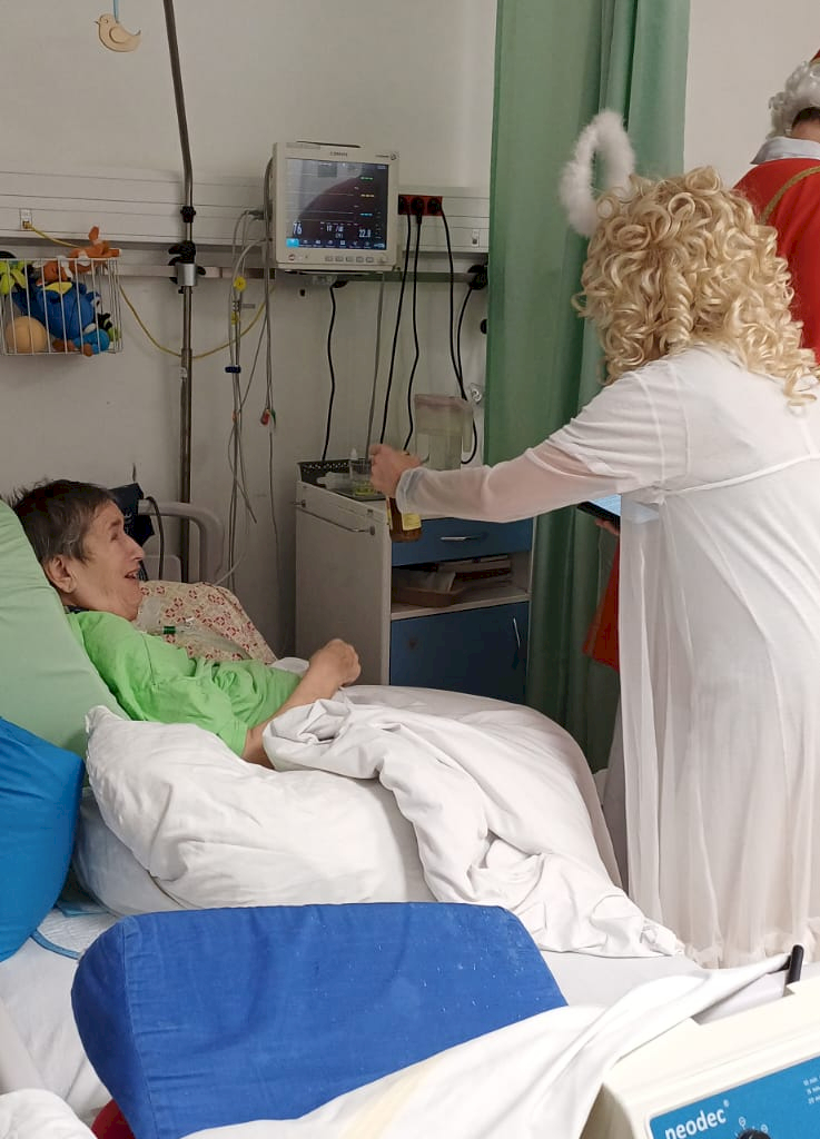 Se svými pomocníky pacientům rozdala perníčky a společně si zazpívali koledy.