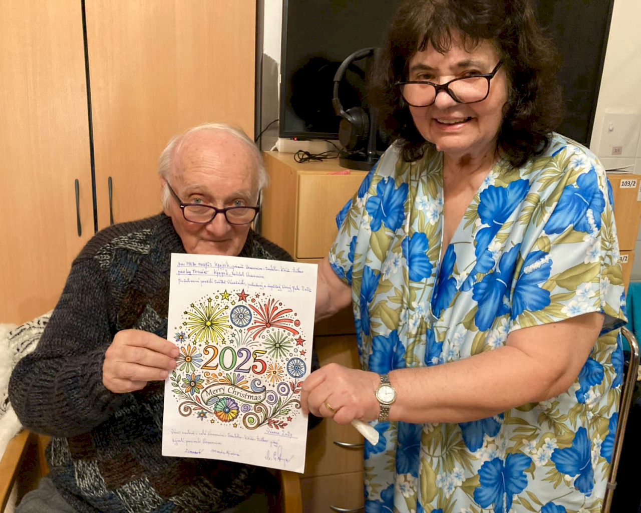Naši tři bývalí pacienti Marta, Libuše a Miroslav se shodou náhod ocitli ve stejném zařízení a společně nám jej namalovali a poslali.