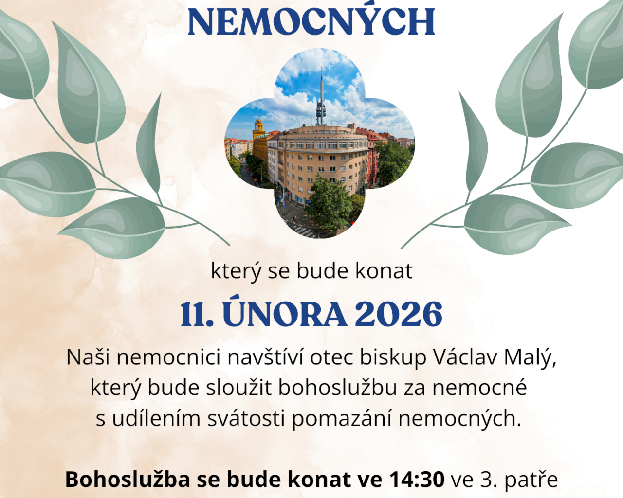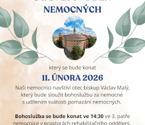 Naši nemocnici navštíví otec biskup Václav Malý, který bude sloužit bohoslužbu za nemocné s udílením svátosti pomazání nemocných.