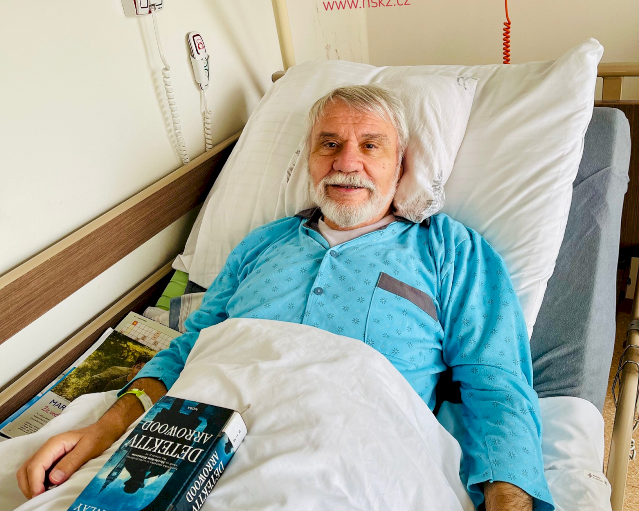 „S několika zaměstnanci jsem se tu spřátelil, jsme dohodnutí, že až se uzdravím, sejdeme se i mimo nemocnici. Na to se moc těším. Práce zdejšího personálu je hodně náročná a záslužná,“ říká o pobytu u nás.