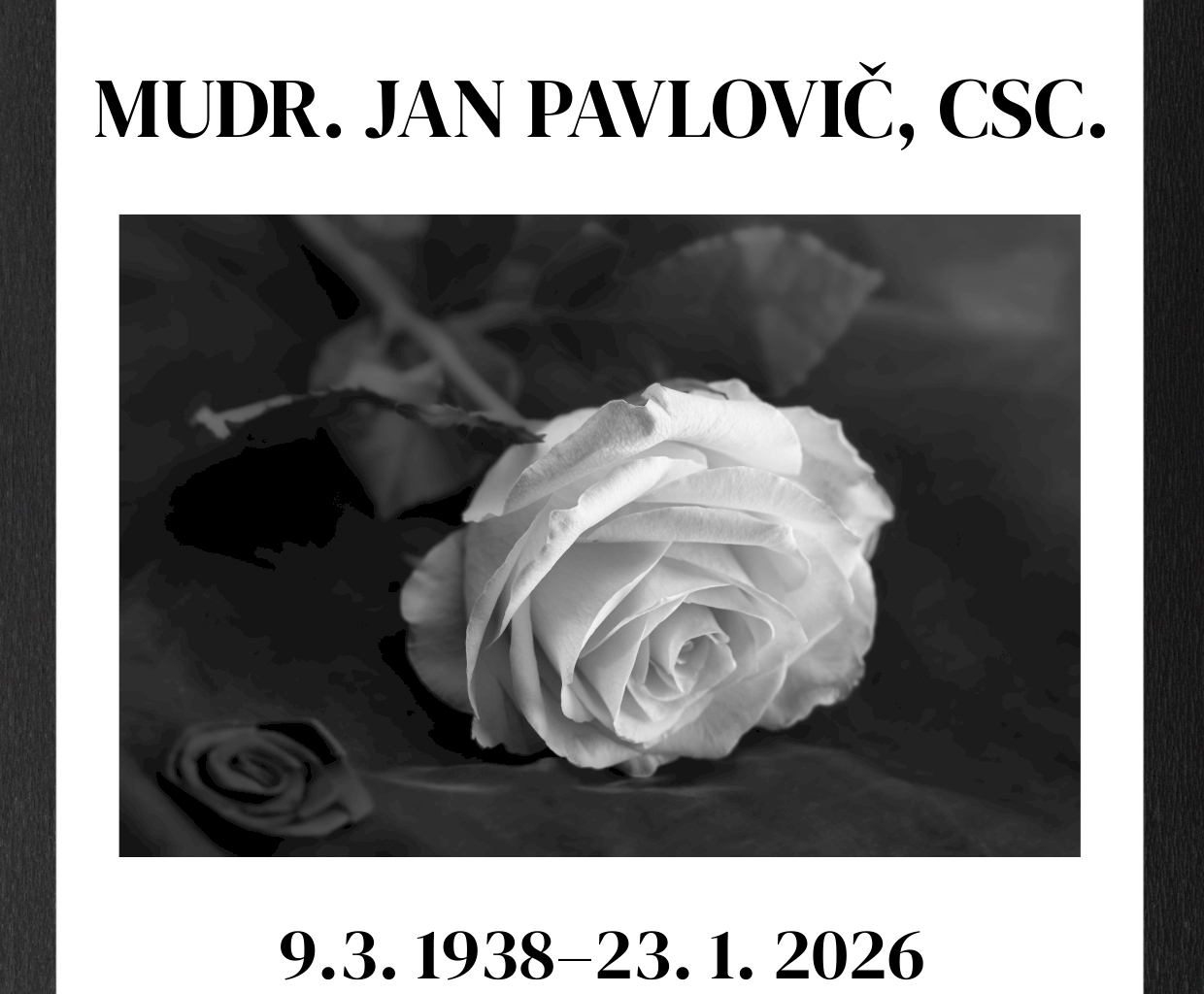 Novinky Ambulantní centrum, lůžková oddělení, RTG a SONO, lékarna.Nejen pro Prahu 3. Aktuality Zemřel MUDr. Jan Pavlovič, CSc. Se zármutkem oznamujeme, že 23. 1. 2026 zemřel MUDr. Jan Pavlovič, CSc., který u nás pracoval na kardiologii. Budeme na něj vzpomínat jako na výborného a nesmírně pracovitého lékaře a odborníka ve své profesi. Čest jeho památce.Publikováno: 25. 1. 2026 Fotogalerie